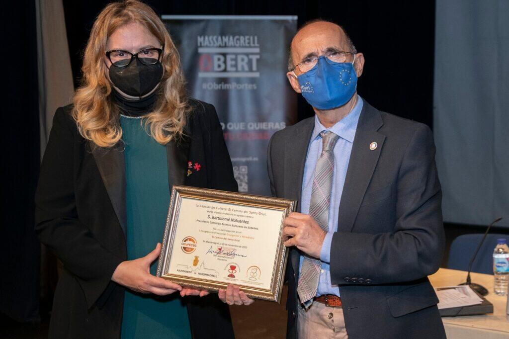 De forma presencial D. Bartolomé Nofuentes, Presidente Comisión Asuntos Europeos de EUMAHS expuso el futuro del Camino del Santo Grial en Europa.