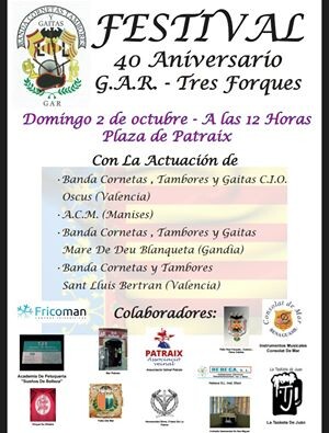 - 18:00 Concert de la Banda Musical U.D.P. deLlíria–Camp de Túria–Serranos a la Plaça de Sant Llorenç en València