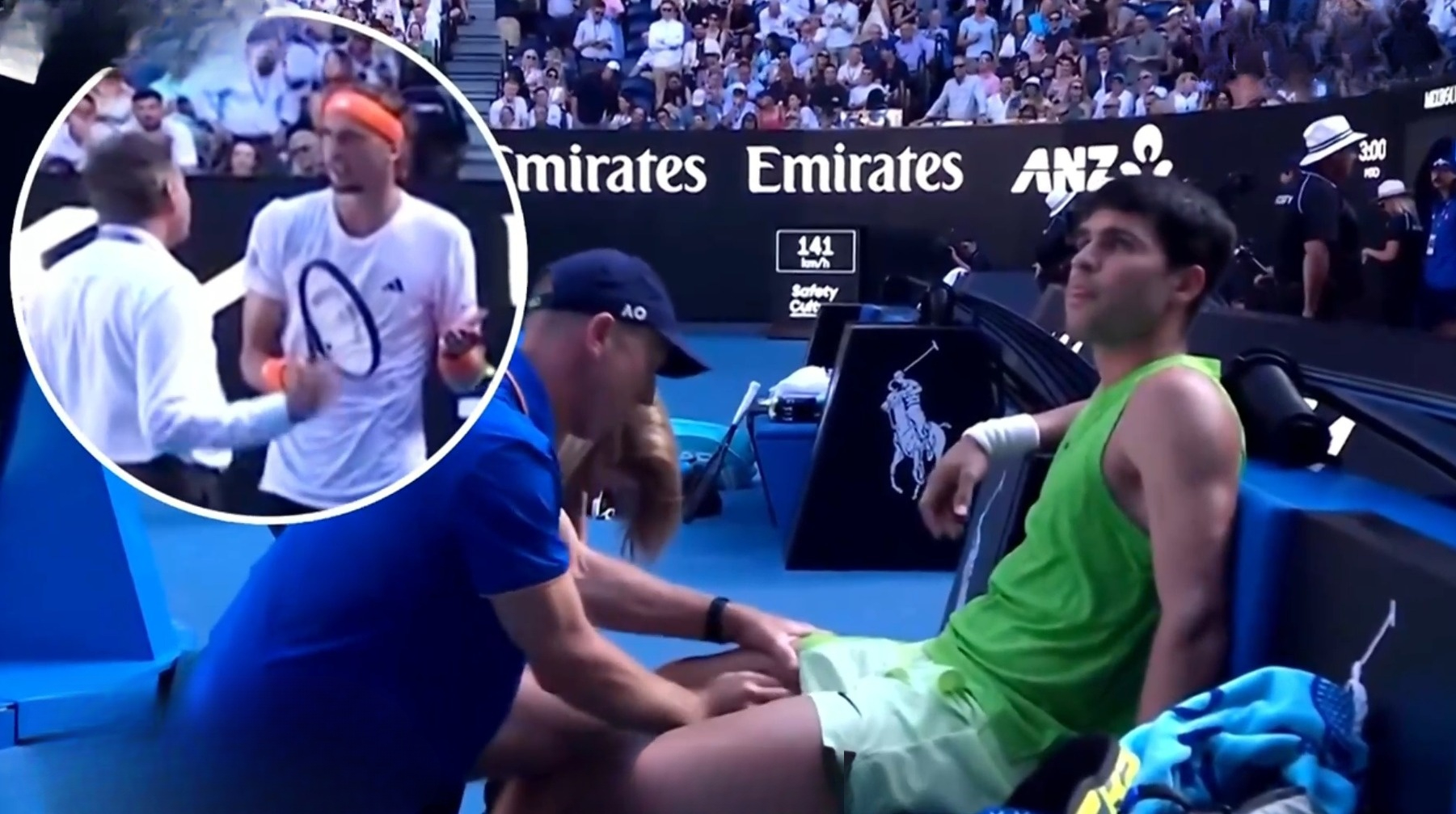 Con más de 30 grados sobre el Rod Laver Arena, Alcaraz dominaba el partido con dos sets de ventaja cuando su físico comenzó a traicionarle. El español avisó a su banquillo de que no se encontraba bien. Minutos después, el drama era visible: náuseas, piernas agarrotadas y gestos de dolor constantes.