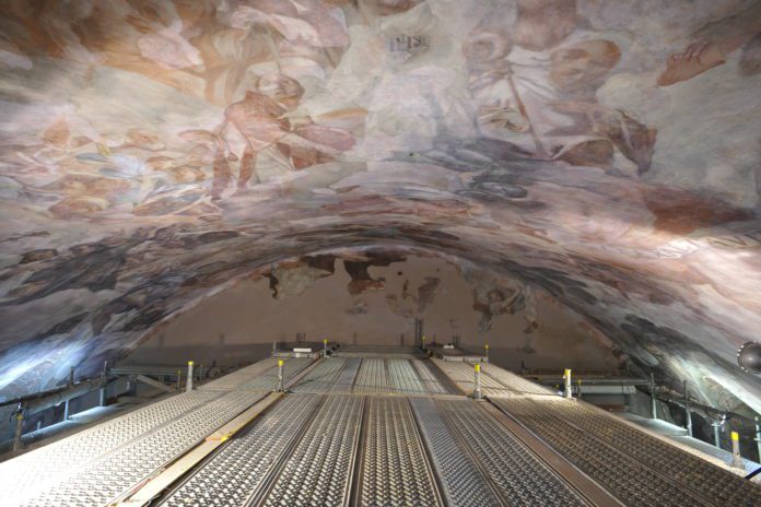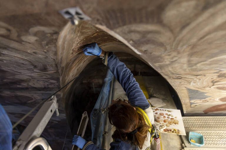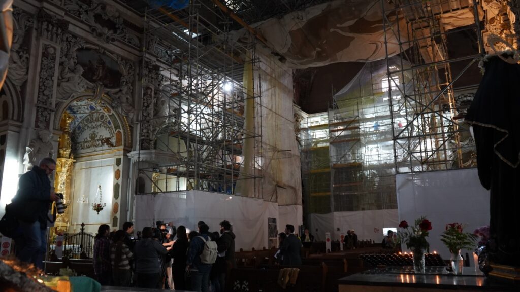 La directora de la restauración del templo denunció que los frescos barrocos del ábside fueron sustraídos en los años 90, y advierte que “la denuncia no prescribe”. El próximo 28 de noviembre, cuando reabra el edificio tras obras, las pinturas que no se han localizado serán proyectadas sobre la bóveda mediante videomapping.