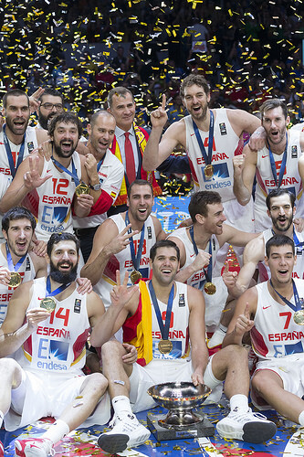 Y en el último cuarto, la sentencia. La demostración de esa capacidad para saber adaptarse a los diferentes escenarios en los que el campeonato y todos sus partidos han situado a España. Porque los nuestros anotaron tan sólo dos puntos en cinco minutos pero ante ese atasco el grupo liderado desde la pista por Pau Gasol apretó los dientes en defensa, bajó el culo para trabajar con máxima intensidad para que el rival no encontrara caminos y así, desde el esfuerzo, recondujo situaciones para que primero Lull y luego la estrella universal llama Gasol sentenciaran el partido. Y como representación de la unión y generosidad todos sin excepción tuvieron la oportunidad de saltar a la pista durante el último minuto de la final, entre abrazos, entre lágrimas de emoción, entre sonrisas para, cuando restaban 19 segundos, todo el estadio de Lille con los 27.000 aficionados ovacionando, toda el mundo del baloncesto en los cinco continentes, reconoció a un Pau Gasol que salió del partido como lo hacen los héroes, como el mejor de todos. España llegó a la orilla habiendo navegado por un Río que empezó siendo un caudal de ilusión y que acabó siendo de Oro. Felicidades y Gracias.