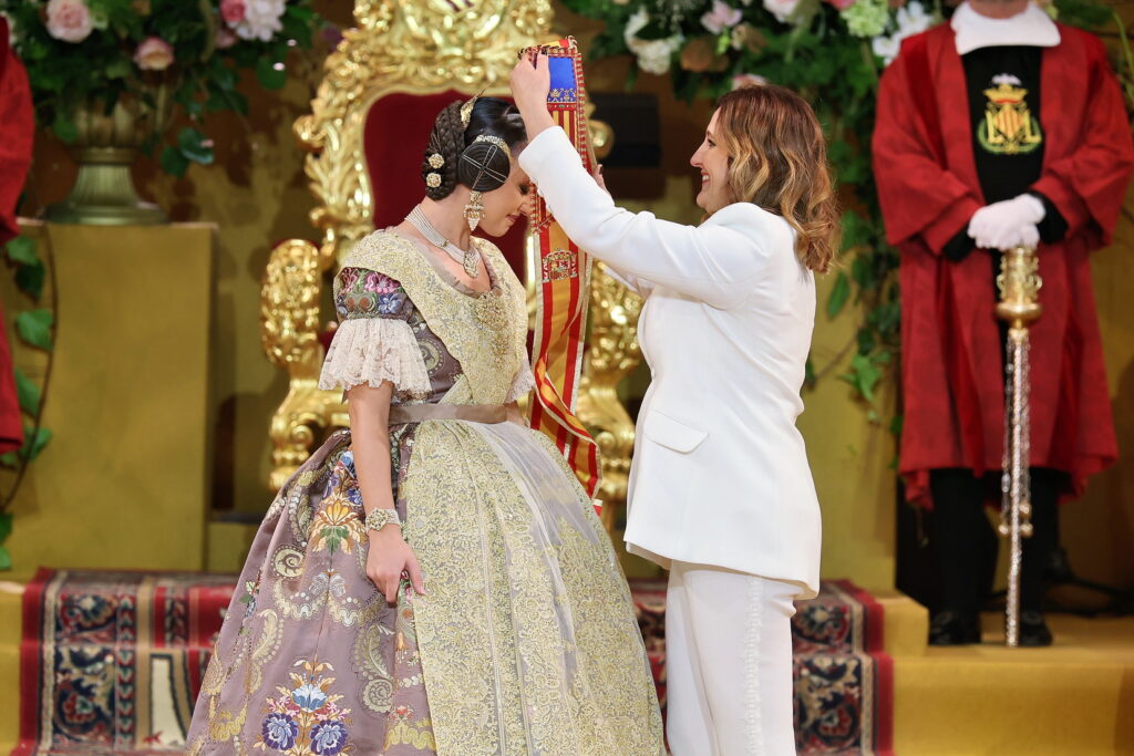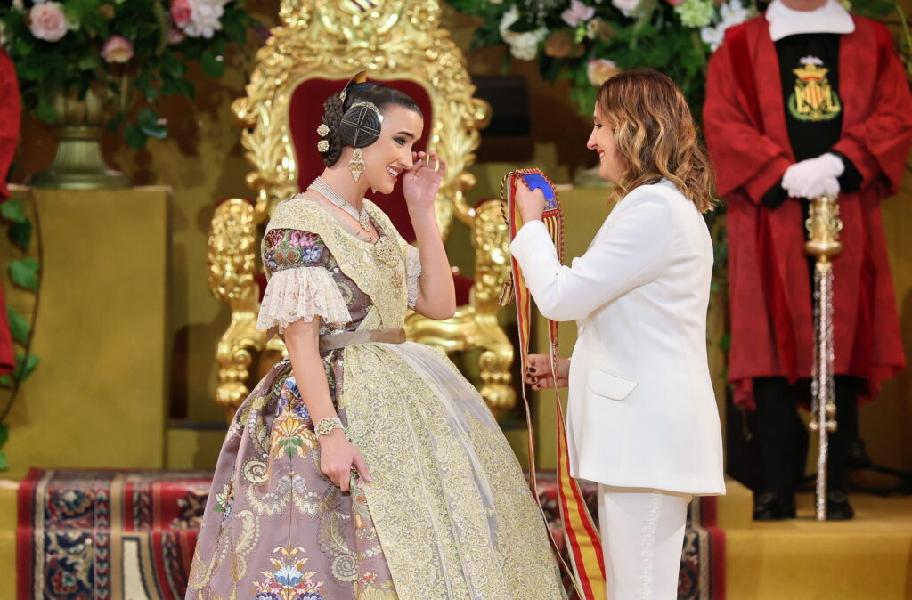 Desde ese instante, Carmen Prades Gil ya luce la banda que la acredita como máxima representante de las Fallas de Valencia, iniciando oficialmente un reinado que arranca entre emoción, tradición y el cariño de todo el mundo fallero.