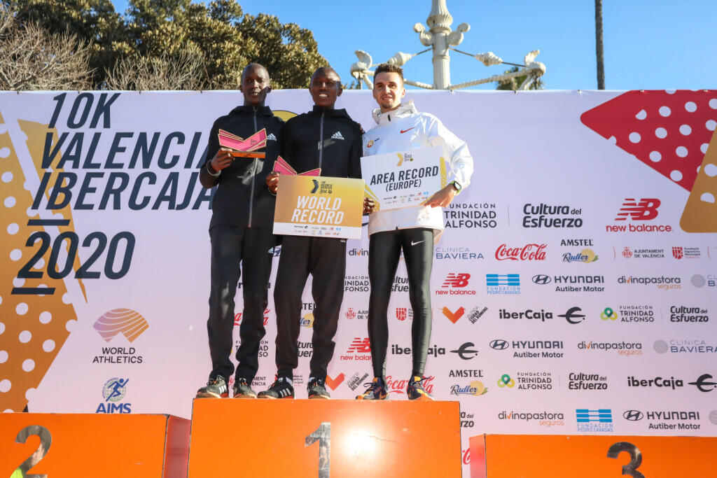 Valencia, 12-01-2020.- El 10K Valencia Ibercaja ha estrenado su Gold Label de la World Athletics (nueva denominación de la IAAF) a lo grande con el nuevo Récord del Mundo de Rhonex Kipruto (26:24) y de Europa de la mano de Julien Wanders (27:13), y con un nuevo registro histórico de llegados a meta este domingo, la mejor participación de su historia tras haber superado con creces los 14.500 inscritos.