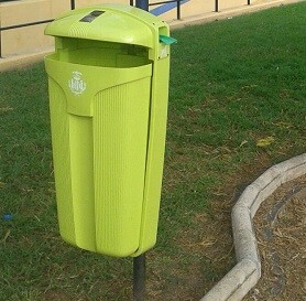 El segundo modelo, Prima Línea, tiene una capacidad de 50 litros. Está hecho con polietileno de origen vegetal, Green Made. Se repartirá un total de 175 unidades por los barrios con el objetivo de reforzar la cantidad de papeleras ya existentes.