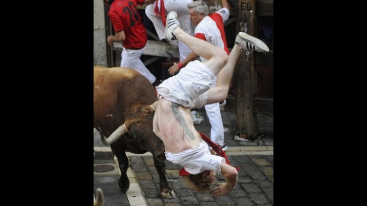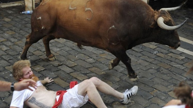 El británico, de 30 años, fue identificado con las iniciales A.B.O. Sufrió una cornada en la entrepierna, según indicó la oficina de prensa de las fiestas.