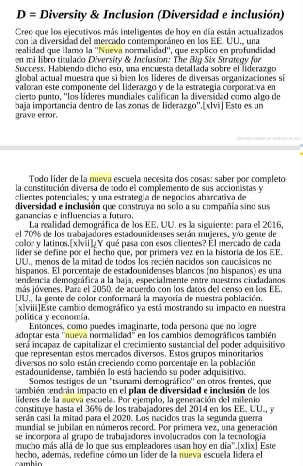 Si usted es un ejecutivo y sabe cómo operar en un espacio diverso, estará en ventaja con su competencia para cualquier posición de primer nivel. Estas “Seis Grandes” estrategias prácticas lo guiarán al éxito para desarrollar un plan de acción sobre Diversidad e Inclusión; ya sea si trabaja en el mundo empresarial estadounidense, organización no gubernamental (ONG) o dirija una asociación u organización.