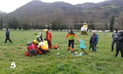 El SAMU que había sido alertado también desde un primer momento, además de enviar el equipo de Atención Primaria de Salas con la ambulancia de la zona, solicitó la intervención del Helicóptero Medicalizado y del Grupo de Rescate del que forma parte un médico rescatador.