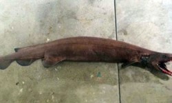 Se trata de un “tiburón anguila” marrón de dos metros de largo conocido también como un “fósil viviente”, una especie que raramente es capturada. La pesca fue en Lakes Entrance, Victoria, Australia. Los especialistas aseguran que sus orígenes se remontan a 80 millones de años y es la única de dos especies que aún sobreviven.