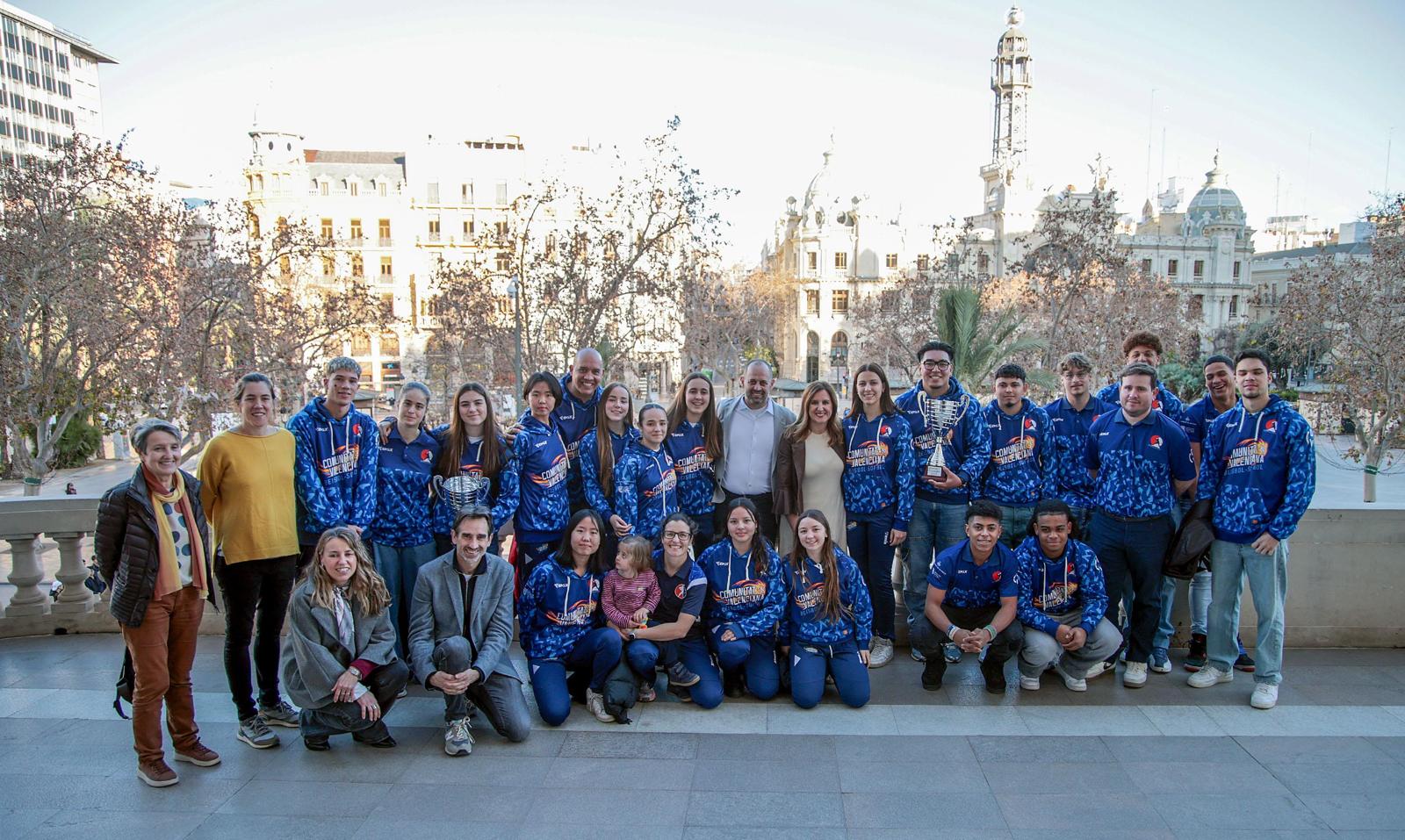 La alcaldesa de María José Catalá ha recibido este jueves en el Salón de Cristal del Ayuntamiento de Valencia a las selecciones valencianas de béisbol y sófbol que han logrado importantes éxitos a nivel nacional en las últimas competiciones.