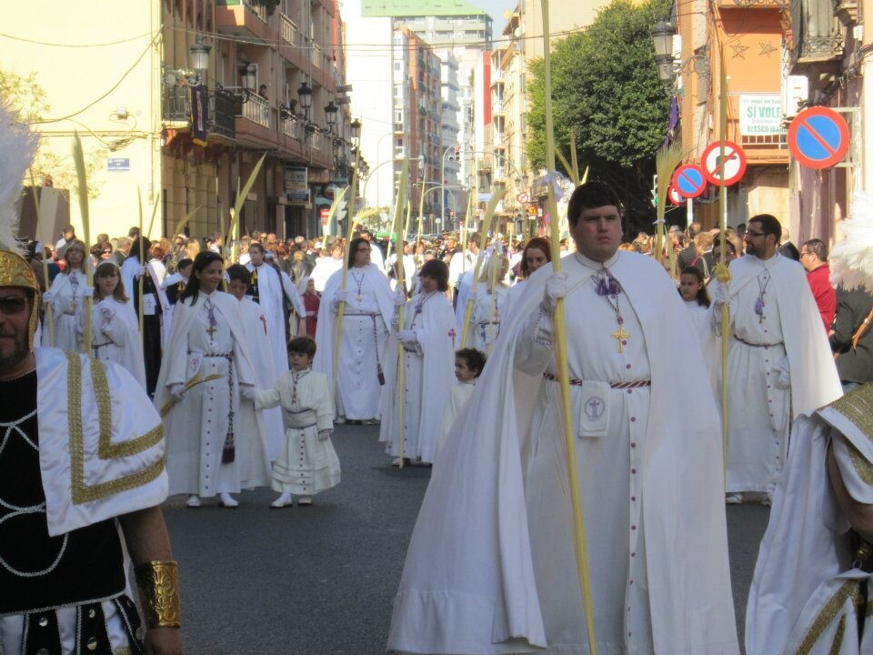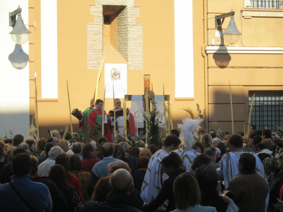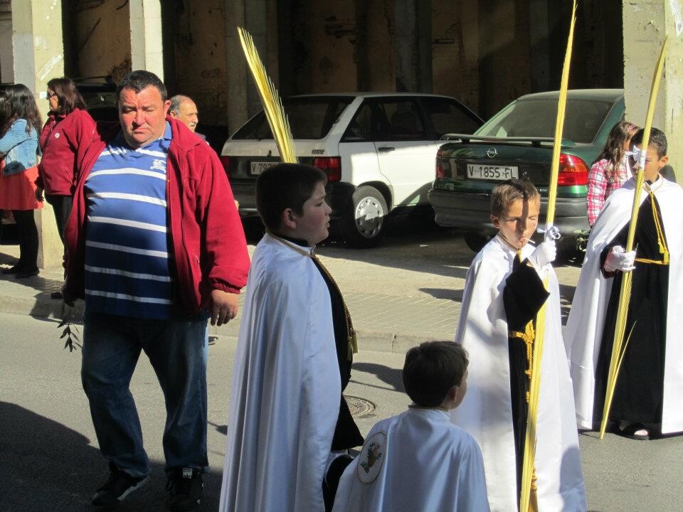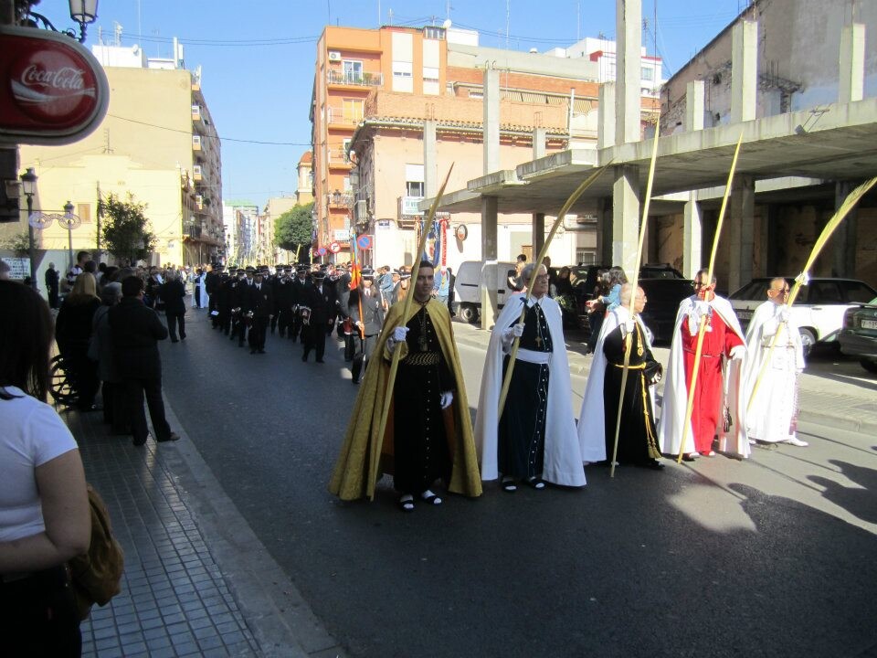 Las hermandades y cofradías del Cabanyal, de la iglesia de los Ángeles, han celebrado ésta mañana la Bendición de Palmas a lo largo de las diversas calles partiendo de la plaza de los Ángeles donde el consiliario de la junta parroquial ha procedido a la bendición.