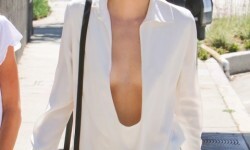 Acostumbrada a los escándalos adolescentes pero siempre con elegancia y refinamiento, esta modelo de 19 años que saltó a la fama con el reality familiar Keeping Up with the Kardashians se animó a un escote asesino: una remera blanca larga con una pronunciada apertura que llegaba hasta el ombligo, acompañado de un jean ajustado y unos tacos que enaltecían su figura.