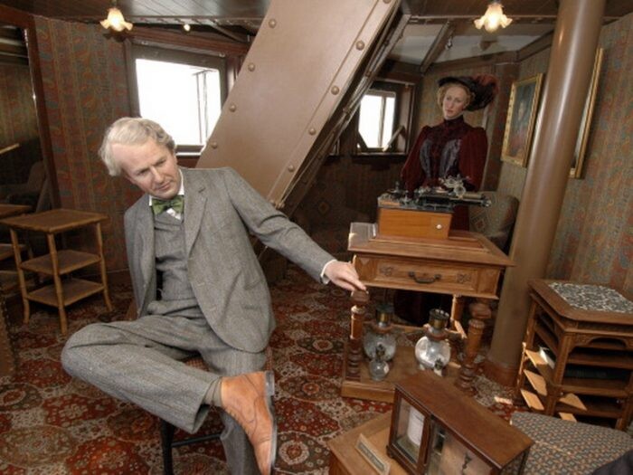 El espacio fue reambientado recientemente, con muebles de la época y cuenta con muñecos de cera de Edison y del dueño de casa.