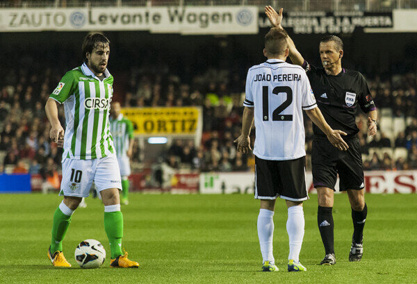 El Valencia CF estaba desplegando un juego alegre y muy vistoso, incluso antes del gol. Confiado en sus posibilidades y consciente de la necesidad imperante del triunfo. Feghouli y Pereira se convirtieron en una pesadilla para la zaga bética. En el 39′ Jonas lo probó de tiro lejano tras dejada de Soldado. El dominio era total, pero faltaba un remate limpio a puerta.