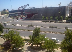 Desde el pasado lunes la zona común de la dársena interior del puerto ya está restringida al tráfico y a lo largo de estos días los operarios se han dedicado a retirar el mobiliario urbano que durante todo el año decora la zona y delimita las zonas de aparcamiento de dentro del recinto portuario para que inmediatamente los grande bloques de hormigón que marcan el muro de la pista comiencen a aparecer para delimitar el circuito.