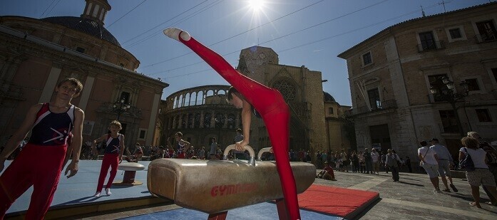 Valencia Noticias | Redacción.- La Fundación Deportiva Municipal y el Club Deportivo Antares organizaron el pasado sábado 24 de septiembre una jornada de entrenamientos y exhibiciones de gimnasia masculina, que convirtieron la Plaza de la Virgen en un gimnasio al aire libre para asombro de vecinos y turistas, que disfrutaron con la iniciativa.