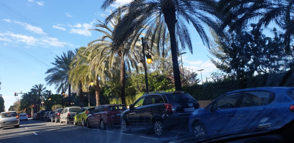 Aparatoso accidente de tráfico en la Avd Tres Cruces de Valencia frente al Hospital General, donde un coche aparece volcado
