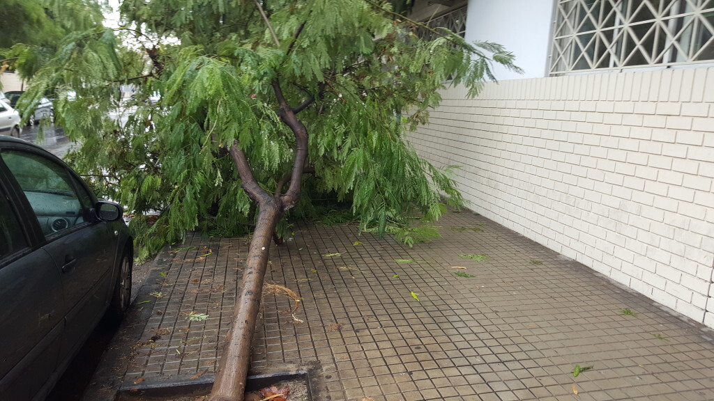 Caída de árboles en las puertas de los colegios, coches e incluso en la puerta de un centro de salud, concrétamente en la calle Economista Gay