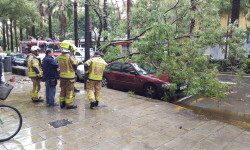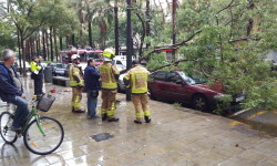 La lluvia y potentes rachas de vientos provocan la caída de numerosos árboles en la ciudad de Valencia