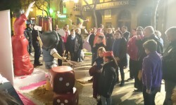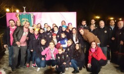 Valencia noticias | Jose Cuñat.Anoche la comisión falla Plaza de la Merced acudió en un gesto de ” agermanament” al monumento de Blanquerías donde le esperaba un grupo de componentes de la comisión y donde se le hizo entrega de una pieza de color rosa de cadafalco plantado en la plaza, que coincidiera de alguna forma con el conjunto monumental.