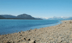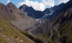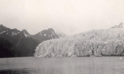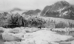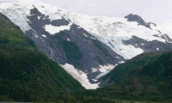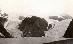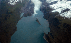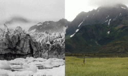 La fotografía de 2004 documenta el adelgazamiento continuo. El Glaciar ha retrocedido más de 0,3 kilómetros desde 1919, a una tasa promedio de alrededor de 4 metros por año
