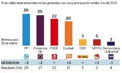 Valencia Noticias | Redacción.- Según Metroscopia, la situación actual de la intención directa de voto en el municipio de Valencia deja como conclusiones más importantes un altísimo porcentaje de indecisos (hasta un 25,3%), y una caída en picado tanto de PSOE como de UPyD, junto a un ascenso meteórico de Ciudadanos y Valencia en Comú, que se convertirían en la segunda y tercera fuerza más votada, por detrás del PP, que mantendría por muy escaso margen su condición de fuerza política más votada.