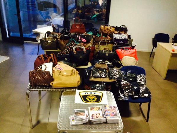 Avanzadas las pesquisas, los agentes registraron los cuatro bazares en los que encontraron 14.448 artículos falsos y muy diversos: colonias, perfumes, objetos de regalo, bisutería, ropa y calzado, entre otros. El material falsificado estaba expuesto en sus almacenes, perfectamente camuflados con trampillas y puertas falsas, así como segundos pisos de difícil acceso y otros habilitados recientemente con la intención, al parecer, de ampliar el espacio de almacenaje de cara al posible aumento de la demanda de estos productos en las próximas fiestas. Entre los miles de efectos falsificados se encuentran productos de prestigiosas marcas como Armani, Levis, Lacoste, Hugo Boos, La Martina, Burberry, Ray-Ban, Carolina Herrera, Franklin & Marshall, Adidas, Louis Vuiton, Chanel o Guess.