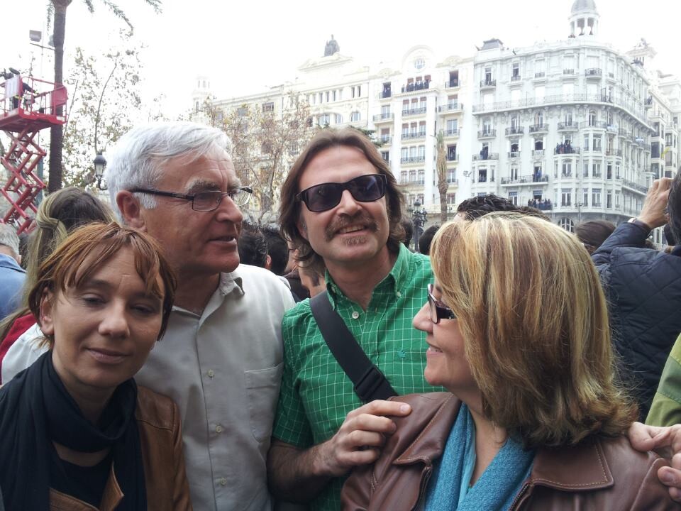 Ella, Castillo y Ribó bajaron el sábado a respaldar a su asesor Guiseppe Grezzi quien el jueves estuvo en la plaza ¨para hacer fotos de quienes protestaban contra los recortes¨, según fuentes de Compromís quienes agregaron que nunca estuvo para alentar a los participantes en las protestas que en twitter se pueden leer bajo el hastag #intifalla.