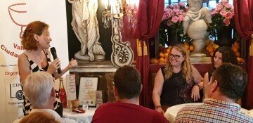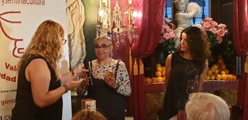 La acompañaron en este acto Marc Insanally alma del Café de las Horas y la Dra. Mafé quien lleva desde hace más de 5 años difundiendo la cultura desde su plataforma ENCUVA, Encuentros Culturales en Valencia.