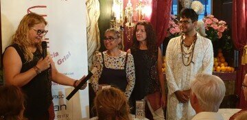 La entrega del galardón comenzó con unas palabras de la Dra. Mafé quien dio paso al cantante músico escritor y compositor internacional Yaco Lara.