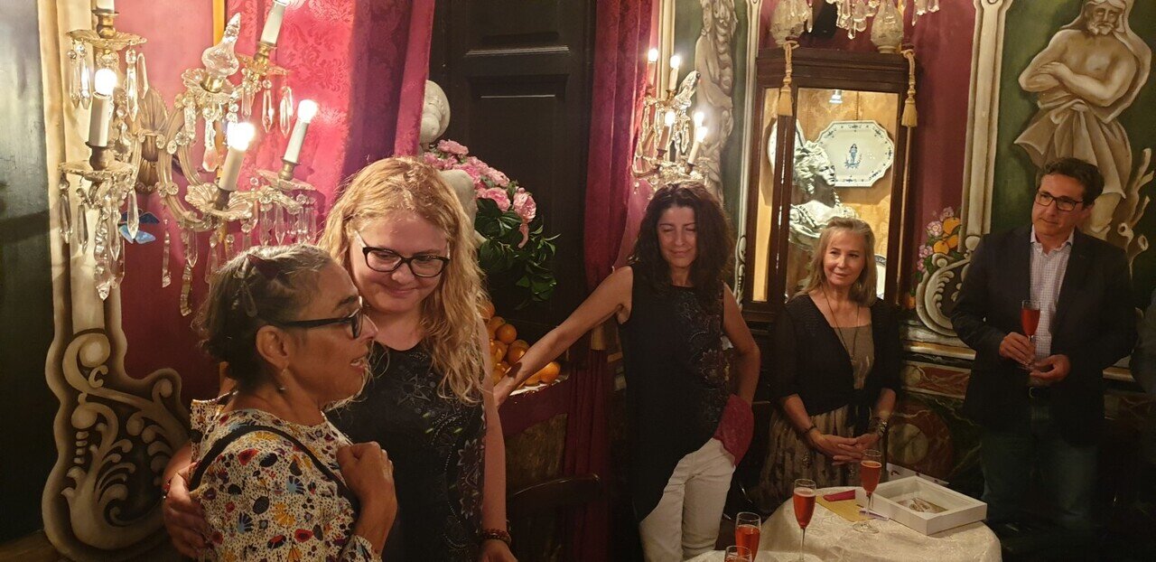 La acompañaron en este acto Marc Insanally alma del Café de las Horas y la Dra. Mafé quien lleva desde hace más de 5 años difundiendo la cultura desde su plataforma ENCUVA, Encuentros Culturales en Valencia.