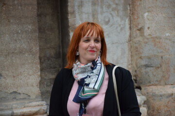 En una cercana cafetería justo al lado de su plaza porticada, Celia Peris sacó su grabadora y pidió a la Dra. Ana Mafé que enriqueciera su relato en lo relativo a Roma y sobre todo a cómo salió la copa desde Jerusalén.