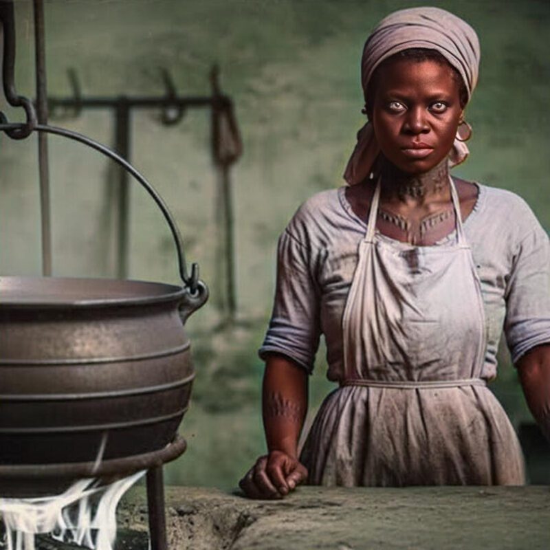 Lucía fue asignada a la cocina, un espacio donde el fuego, los morteros y los aromas eran casi el único lugar donde su mano podía imponerse al mundo. Sus guisos eran celebrados sin que nadie pronunciara su nombre. Su arroz con coco era famoso entre los invitados del amo, que alababan la comida pero nunca a la cocinera.