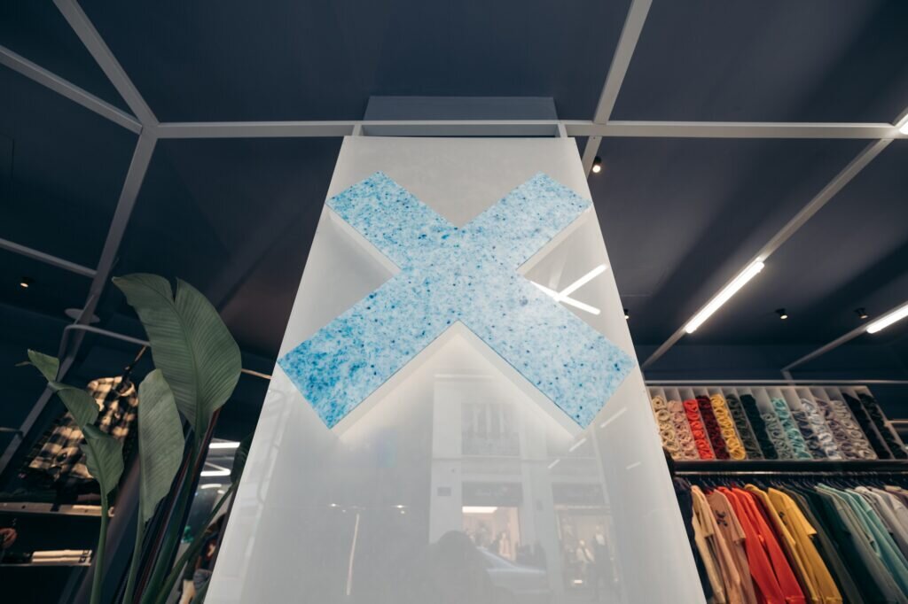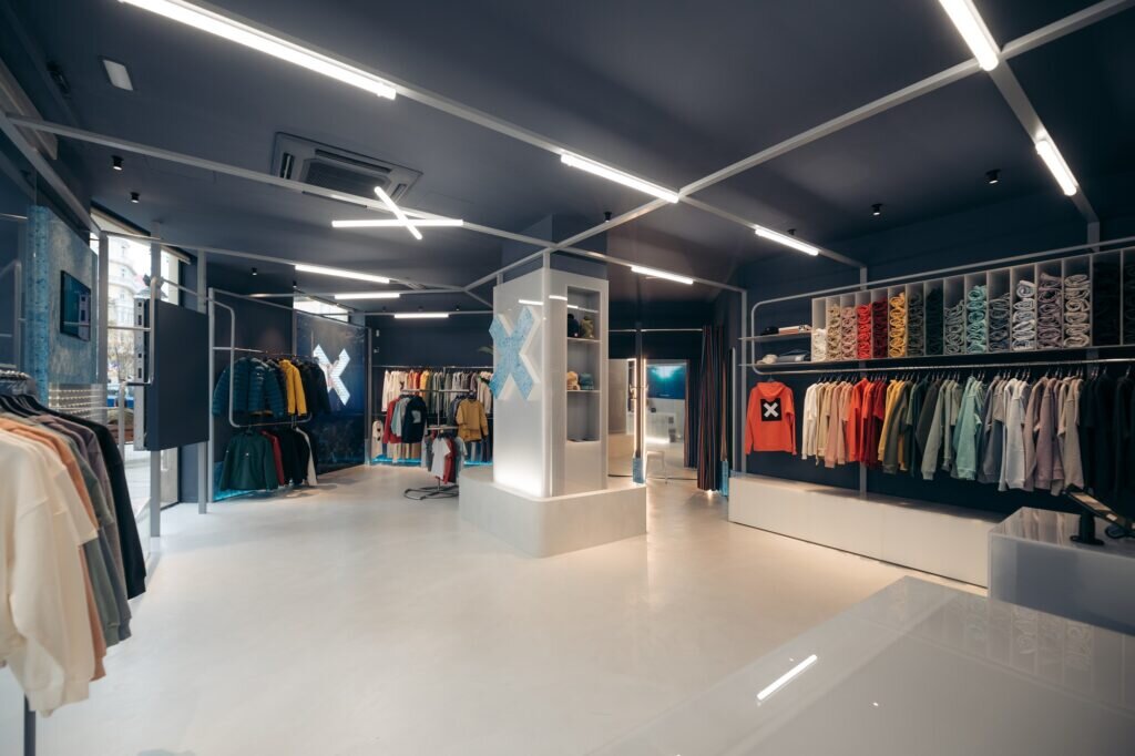 El espacio, de 56 metros cuadrados de exposición, cuenta con todas las colecciones de Blue Banana, desde sus camisetas, sudaderas y hoodies (sudaderas con capucha), bestsellers de la marca que llevan en el catálogo desde las primeras temporadas de Blue Banana, hasta la última colección otoño-invierno 2021, la más grande hasta el momento, con más de 100 nuevas prendas unisex, para mujeres y niños en torno a su icónica «X».