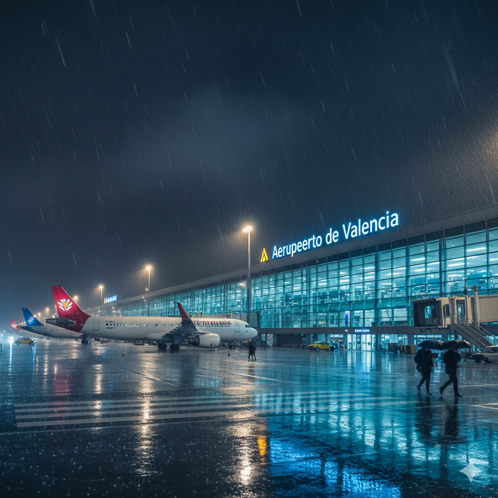 Etiquetas: lluvia Valencia, aeropuerto de Manises, vuelos desviados, Metrovalencia, aviso rojo, Ribera Alta