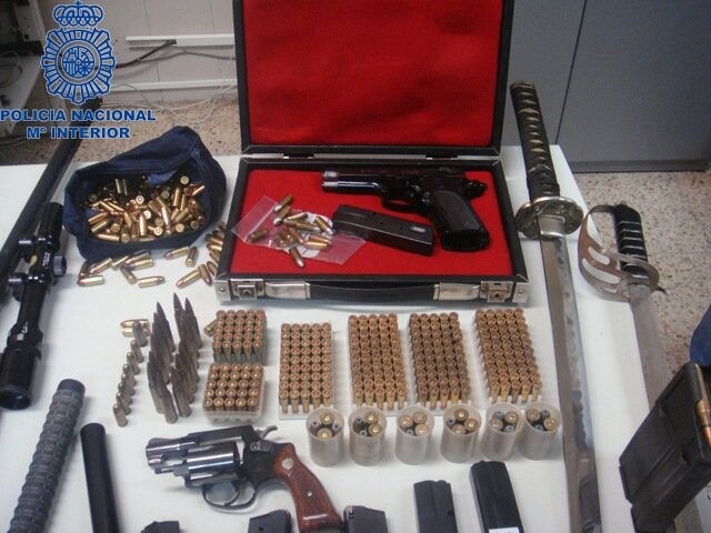 Además, de 10 cargadores de arma corta; cinco de ellos vacíos y el resto conteniendo cartuchos; 535 cartuchos de calibre 9 mm;otros 20 de calibre 44 mm y dos espadas tipo “Katana”
