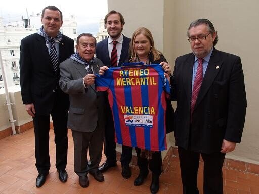 En el otro balcón de moda en estas Fallas, el del Ateneo Mercantil, estuvieron varios directivos del Levante U.D. , como Ramón Vilar. Ellos entregaron una camiseta a la presidenta Carmen De Rosa.