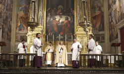 Además, se ha realizado la adoración de la Cruz ante la cruz germánica del siglo XVI que regaló San Juan de Ribera a Valencia, ubicada en el camarín del altar mayor del Real Colegio del Patriarca, detrás de la Última Cena pintada por Ribalta.