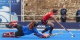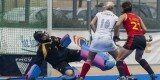En la primera parte la valenciana Lola Riera, a la postre la jugadora más destacada del partido, anotaría por dos veces, minutos 3 y 16, en sendos penaltis-córners dos tantos que pondría por delante a la selección, ventaja que las chicas de Adrian Lock ya no abandonarían.