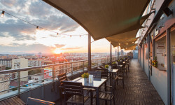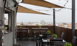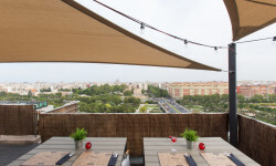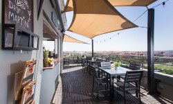 Ubicado en la última planta del hotel, y con excelentes vistas a todo Valencia, la terraza cuenta con una carta cosmopilta y con personalidad: el plato estrella son sus deliciosas y variadas hamburguesas gourmet, que los visitantes podrán acompañar con entrantes (como sabrosas alitas de pollo, quesadillas y nachos con pico de gallo, guacamole y salsa de queso), ensaladas preparadas con los mejores productos frescos y los cócteles más novedosos. Un lugar ideal donde disfrutar con amigos o pareja de un ambiente relajado y agradable en un marco incomparable: un rooftop con increíbles vistas del skyline valenciano.