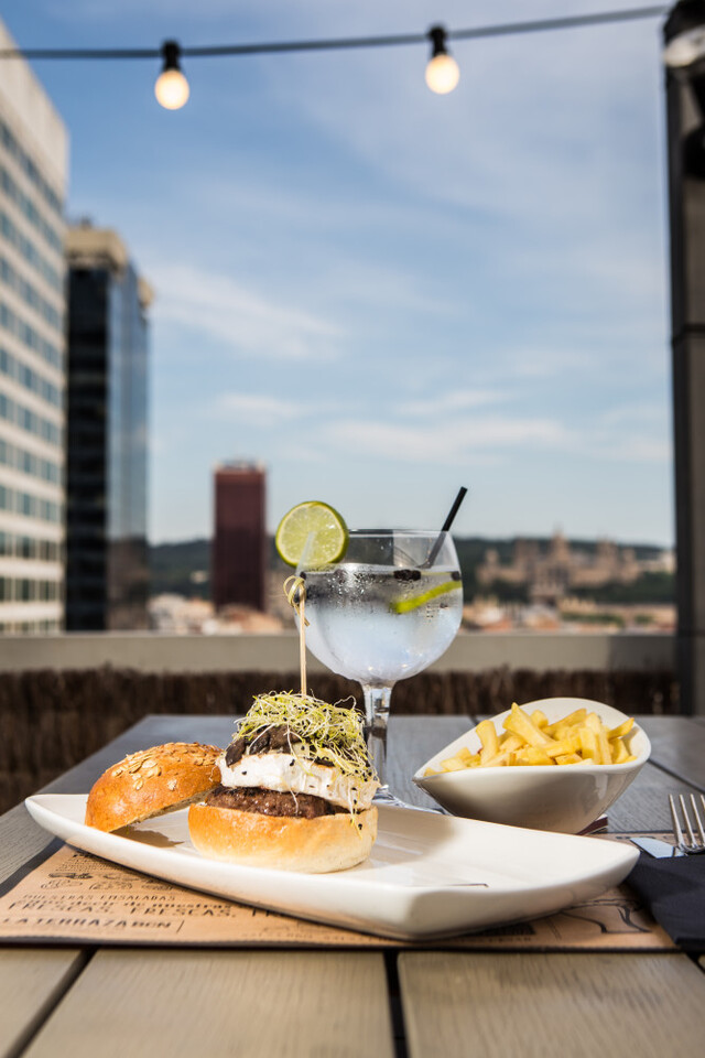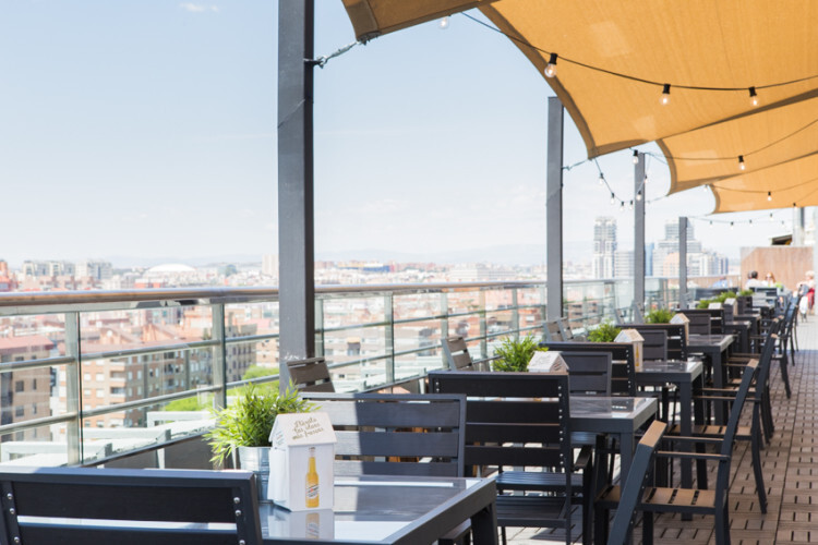 Ubicado en la última planta del hotel, y con excelentes vistas a todo Valencia, la terraza cuenta con una carta cosmopilta y con personalidad: el plato estrella son sus deliciosas y variadas hamburguesas gourmet, que los visitantes podrán acompañar con entrantes (como sabrosas alitas de pollo, quesadillas y nachos con pico de gallo, guacamole y salsa de queso), ensaladas preparadas con los mejores productos frescos y los cócteles más novedosos. Un lugar ideal donde disfrutar con amigos o pareja de un ambiente relajado y agradable en un marco incomparable: un rooftop con increíbles vistas del skyline valenciano.