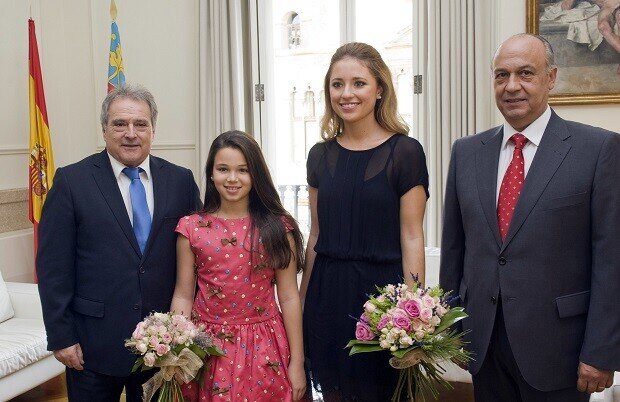 El presidente de la Diputación de Valencia, Alfonso Rus, ha recibido hoy a la fallera mayor de Valencia, Carmen Sancho, y a la fallera mayor infantil, Claudia Villodre.