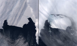 Un iceberg de unos 35×20 kilómetros se separó del glaciar de Pine, en la Antártida, entre el 9 y el 11 de noviembre de 2013. El aumento de la temperatura terrestre propicia que estos acontecimientos tengan lugar cada cinco o seis años. A la izquierda, el aspecto del glaciar el 28 de octubre de 2013. A la derecha, quince días más tarde