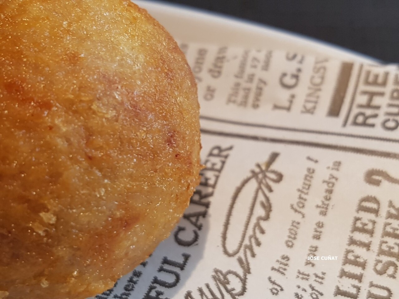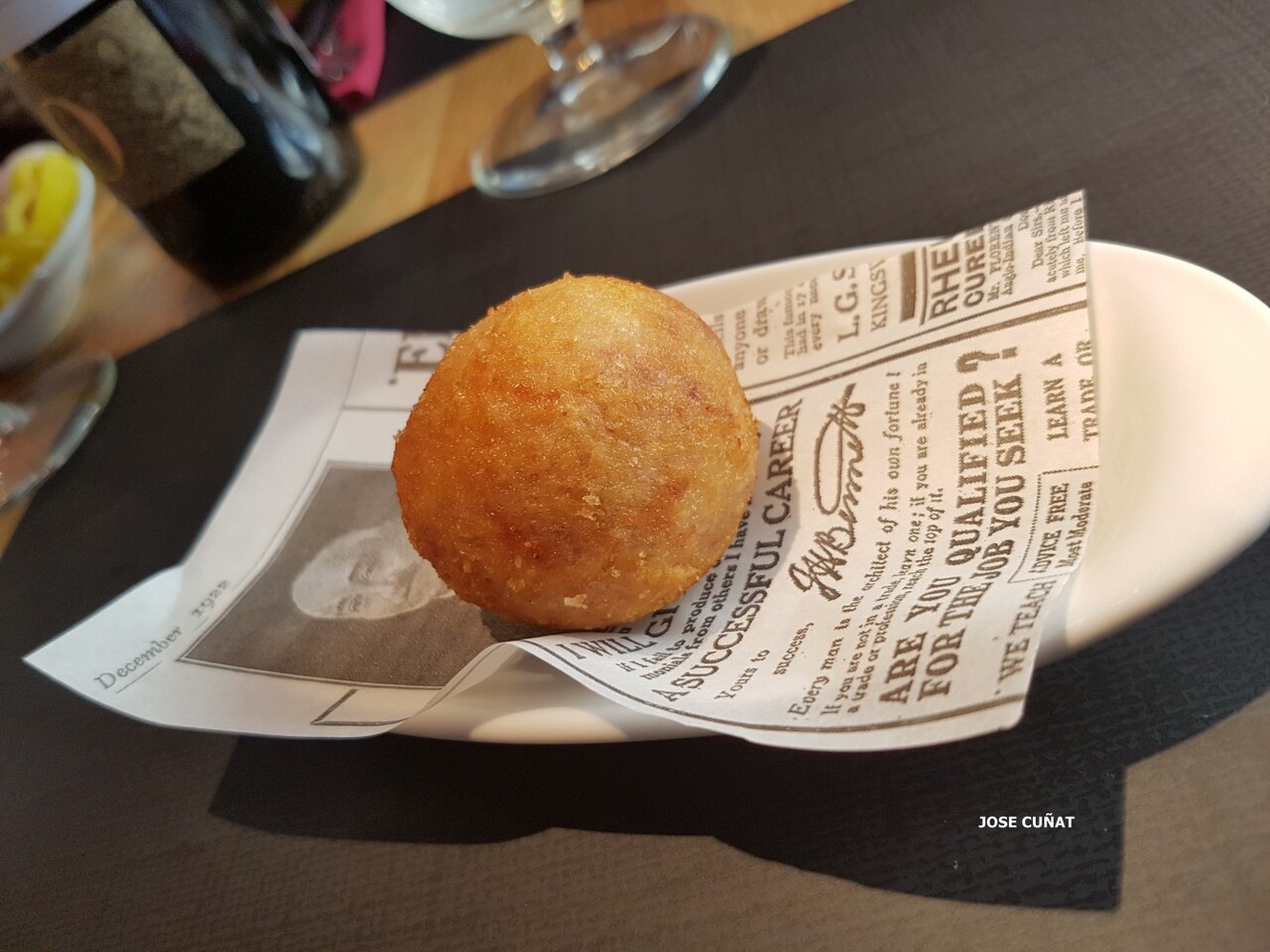 Por si la desgana ataca antes de sacar el plato de cocido, se le sirve al comensal una croqueta de ropa vieja, muy buena. Mientras se preparan los vegetales aniquilados por una larga cocción y la carne.