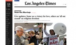 “La ley ya es nacional”, fue el título elegido por el famoso portal de noticias HuffingtonPost, que remarcó que la votación de los jueces fue 5 a favor y 4 en contra. Al mismo tiempo, citó una frase escrita en el fallo, escrito por el magistrado Anthony Kennedy: “Pedían igual dignidad ante los ojos de la ley y la Constitución les otorgó ese derecho”.