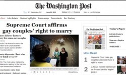 “Las parejas gay ya pueden casarse en Washington, otros 35 estados y en el distrito de Columbia. La votación 5-4 de la Corte Suprema significó que los 14 estados deberán dejar de prohibirlo”, explicó el diario The Seattle Times junto a una fotografía de dos hombres abrazados y llorando de emoción frente una jueza. “Nuestro amor es igual: lágrimas en un tribunal en el momento histórico para Estados Unidos”.