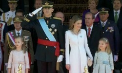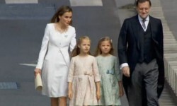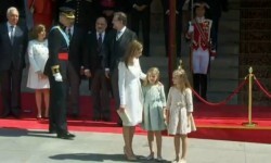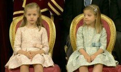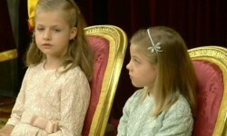 Nada más salir le hacía una caricia en el coche que les llevaría al Congreso, en cuyas escaleras además le ha dado un beso. En cuanto a las infantas a estado atendidas en todo momento por su madre, mientras han estado juntas, que no dejaba de mirarlas.