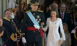 Lo que más ha llamado la atención ha sido el bolso, quizá demasiado grande, en un tono arena suave. Las joyas, igual de discretas que el conjunto, se han limitado a unos pendientes pequeños y el lazo de la Gran Cruz de la Orden de Carlos III, de la que es Dama desde su enlace en 2004.