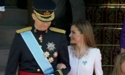 La reina Letizia ha acompañado en todo pomento al rey Felipe VI, durante los actos protocolarios de esta mañana se le han visto muchos actos afectivos hacia su marido y sus hijas.