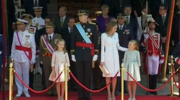 Nada más salir le hacía una caricia en el coche que les llevaría al Congreso, en cuyas escaleras además le ha dado un beso. En cuanto a las infantas a estado atendidas en todo momento por su madre, mientras han estado juntas, que no dejaba de mirarlas.