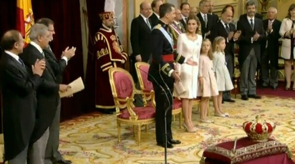 La reina Letizia ha acompañado en todo pomento al rey Felipe VI, durante los actos protocolarios de esta mañana se le han visto muchos actos afectivos hacia su marido y sus hijas.